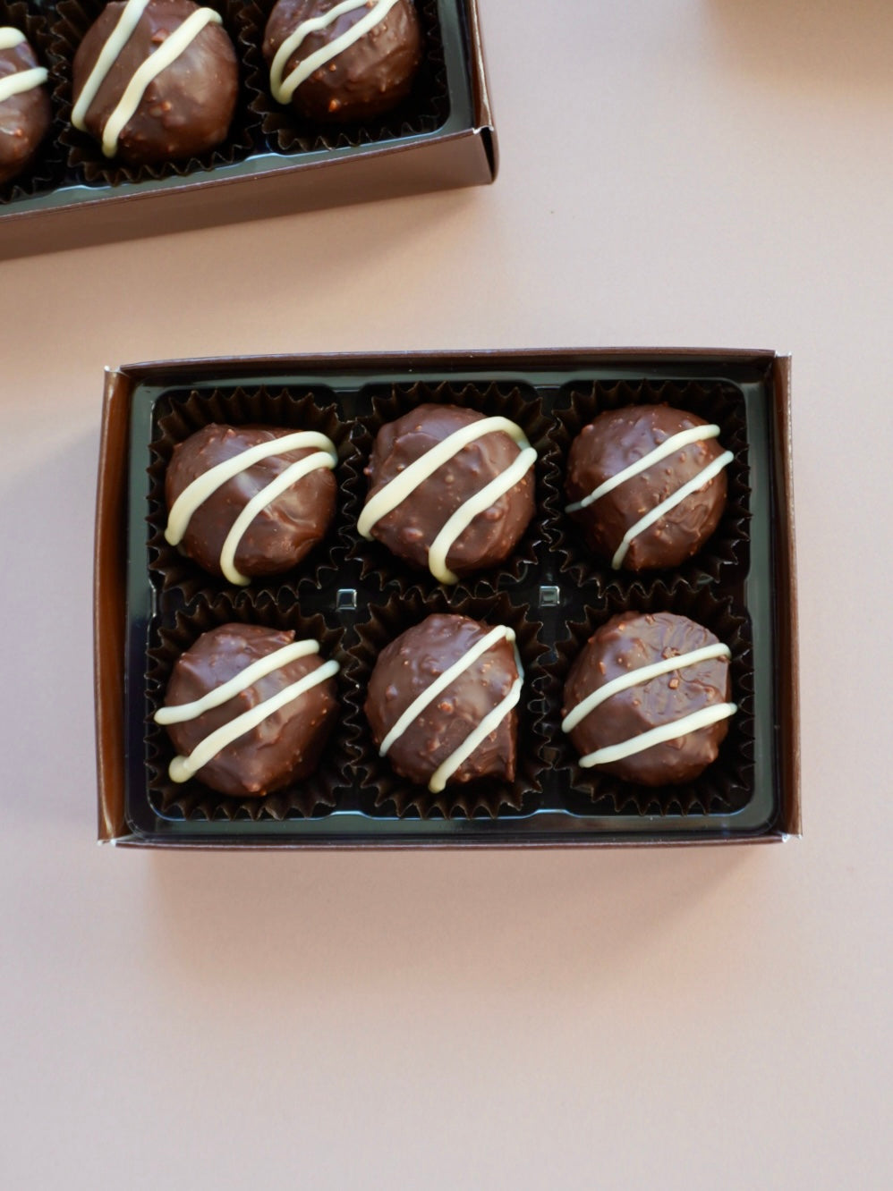These are superb truffles, a crispy, ferrero like outer shell, with an inner dark dip, surrounding a smooth white ganache. The dark dip keeps the sweetness down, which is unusual in a white truffle - the crispy layer is wonderfully crackly, bites through well, no gooey mess. A very refined truffle.
